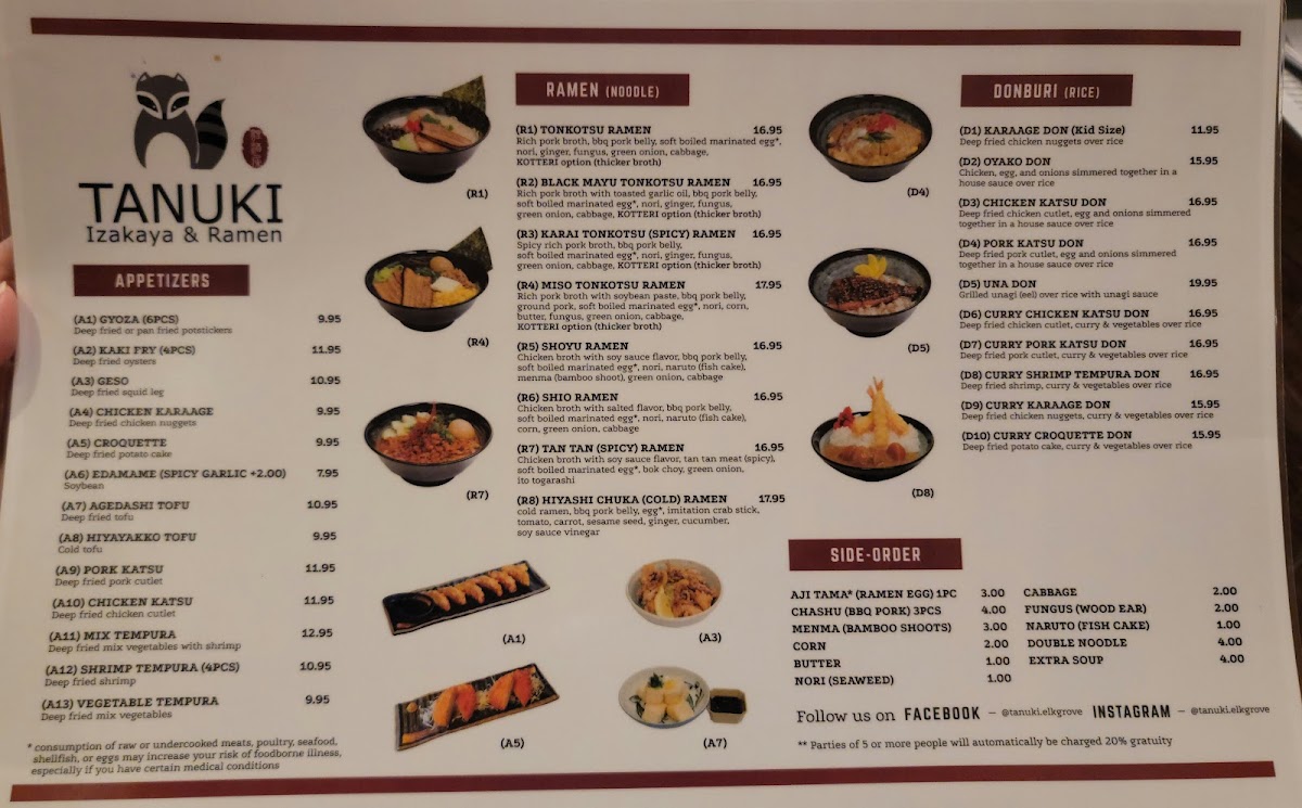 Welcome to Tanuki Izakaya & Ramen, a culinary haven located in Elk Grove, where authentic Japanese flavors come to life. This charming izakaya invites you to indulge in a carefully curated menu featuring handmade dishes, each crafted with love and attention to detail.